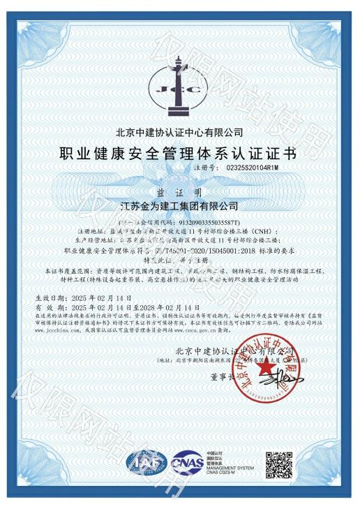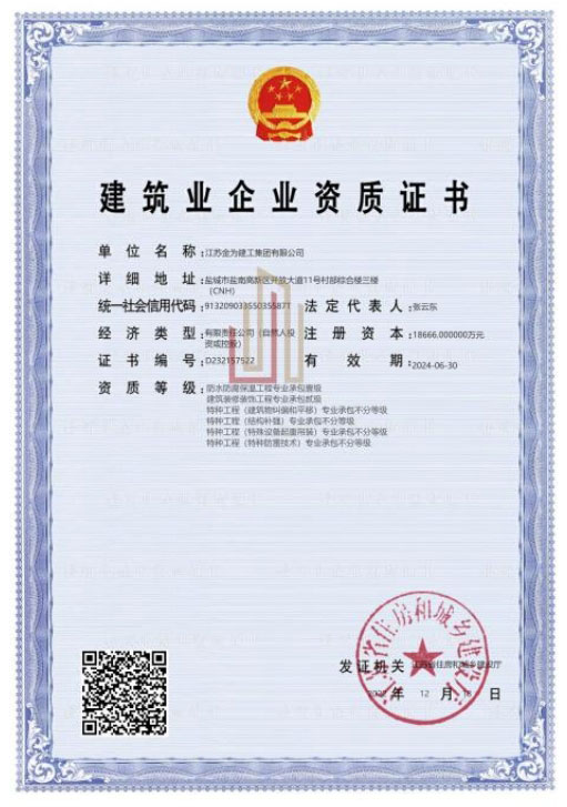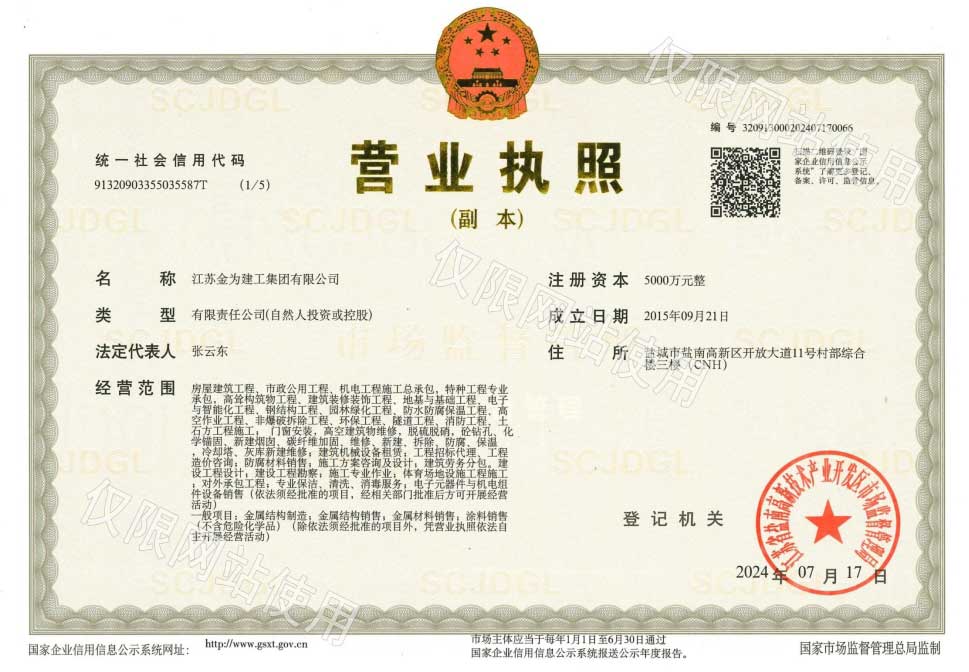江蘇金為建工集團有限公司成立于2015年09月,是建設部核準的房屋建筑施工總承包、市政公用工程總承包、機電工程施工總承包三級資質企業;防腐防水保溫工程、裝飾裝修......